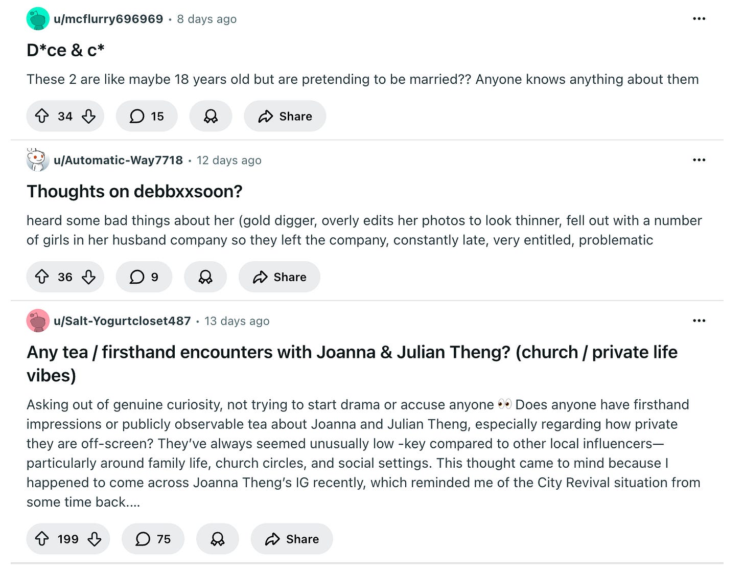 Tea-spilling and snark communities exist everywhere, and Singapore is no exception. While tea-sharing refers broadly to all manner of gossip, snark communities focus on taking down celebrities and influencers.